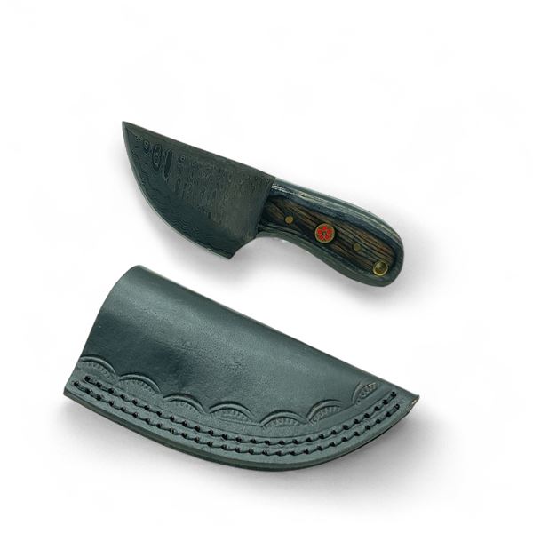 Fixed 2.75" Damascus Blade Mini Cleaver Knife with Leather Sheath