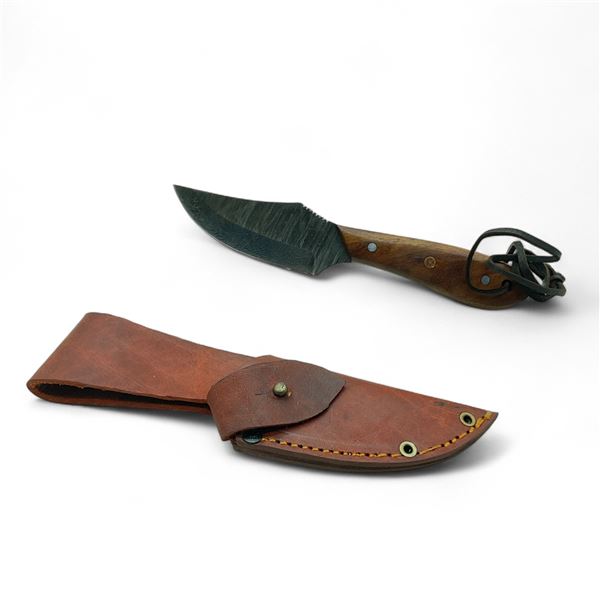 Fixed 3.5" Damascus Blade Knife with Leather Sheath