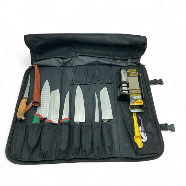 Ergo Chef Knife Roll with Assorted Kitchen Knives and Accessories1142 - Ergo Chef Knife Roll with Assorted Kitchen Knives and Accessories