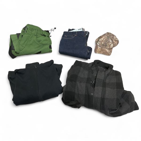 - Under Armor Camo Hat - Tommy Hilfiger Jeans, Size: 32x30 - JT Sporting Pants with Padded Knees, Size: Medium - HG Hoodie, Size: Large - G21 Blac