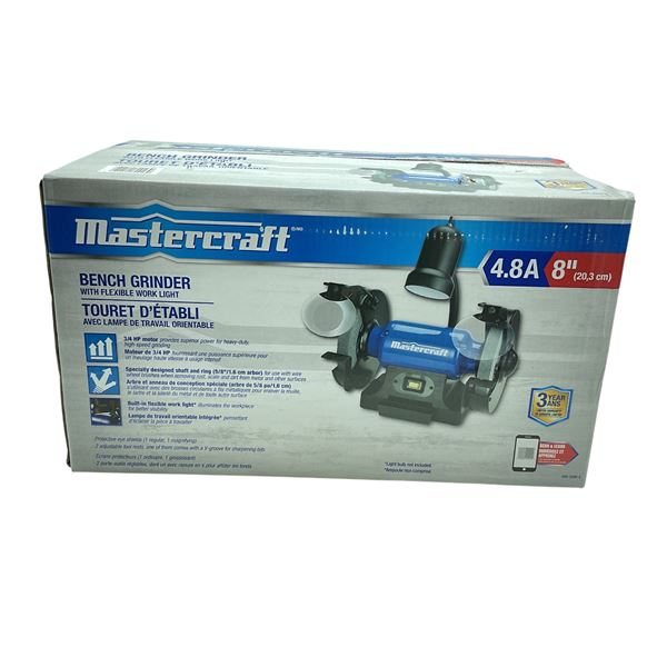 Mastercraft 8" Bench Grinder with Flexible Work Light, 4.8 A, New1160 - Mastercraft 8" Bench Grinder with Flexible Work Light, 4.8 A, New