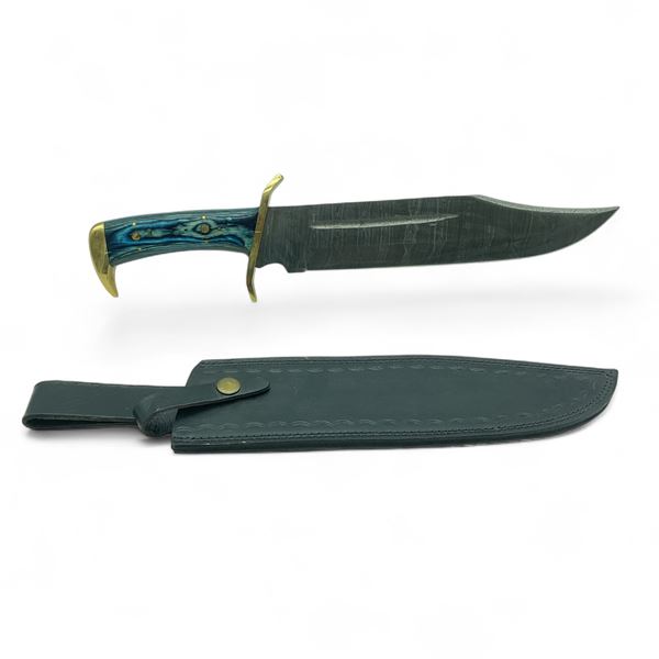 Fixed 10" Damascus Blade Bowie Knife with Leather Sheath