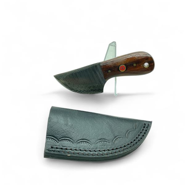 Fixed 6 1/2" Damascus Blade Knife with Leather Belt Sheath