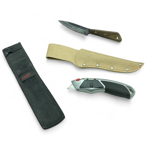 Grohmann Fixed 4" Blade Knife, 2 Sheaths and Fuller Pro Exacto Knife