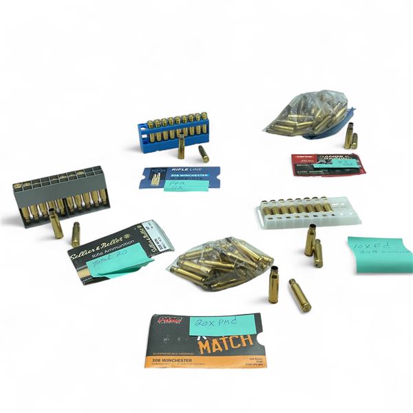 Assorted .308 Win Brass Casings, Approximately 104 Qty Includes: Norma, PPU, Sellier & Bellot, FC and PMC