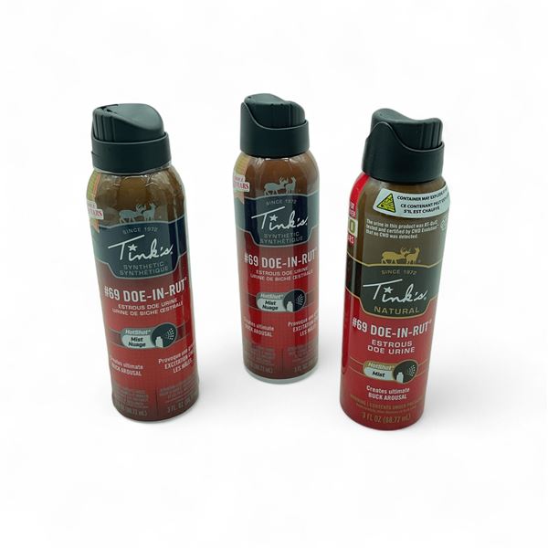 - Tink's Synthetic #69 Doe-in-Rut Estrous Doe Urine, 88.72 mL Mist Spray X 2 Qty - Tink's Natural #69 Doe-in-Rut Estrous Doe Urine, 88.72 m...