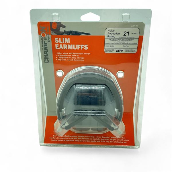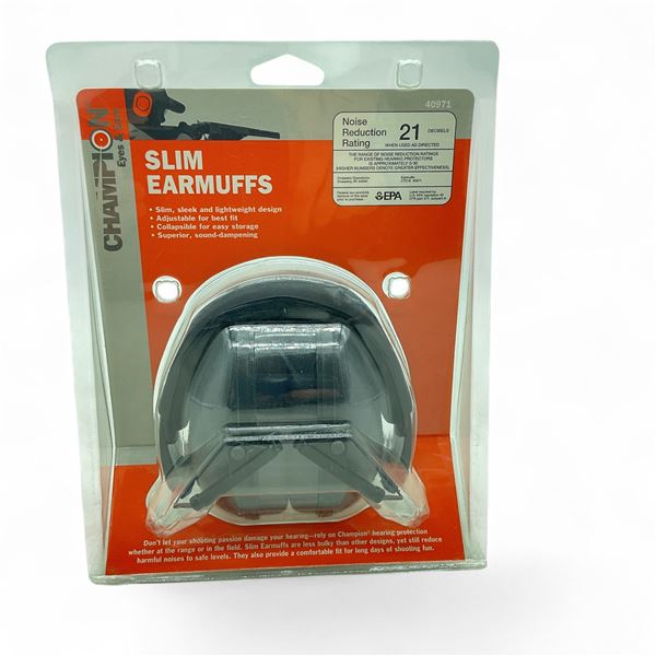 Champion Slim Earmuffs, 21 dB NRR, Black, New
