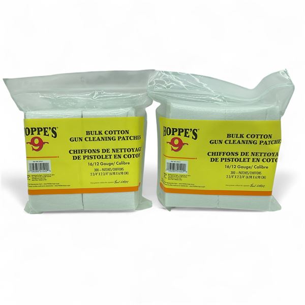 Hoppe's Bulk Cotton Gun Cleaning Patches for 16/ 12 Gauge, 300 Pack x 2 Qty, New