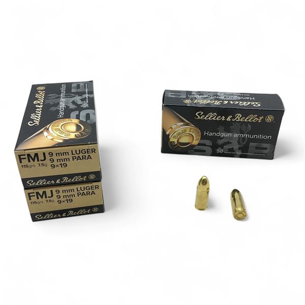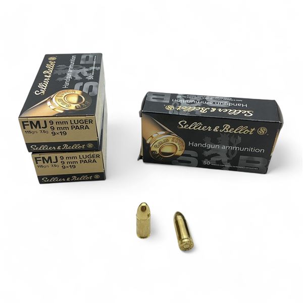Sellier & Bellot 9mm Luger Para 115 Grain FMJ Ammunition, 150 Rounds