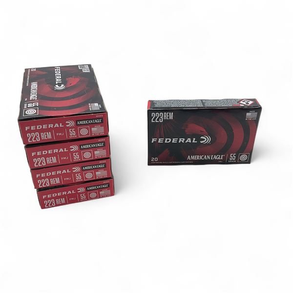 Federal American Eagle 223 Rem 55 Grain FMJ Ammunition, 100 Rounds