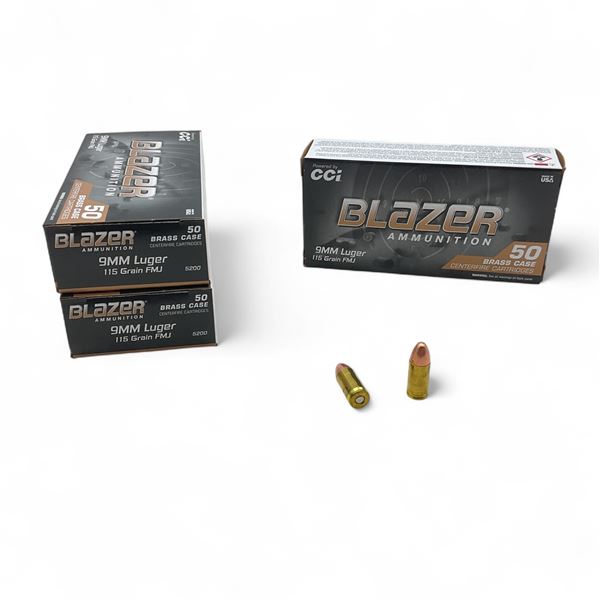 CCI Blazer 9mm Luger 115 Grain FMJ Ammunition, 150 Rounds