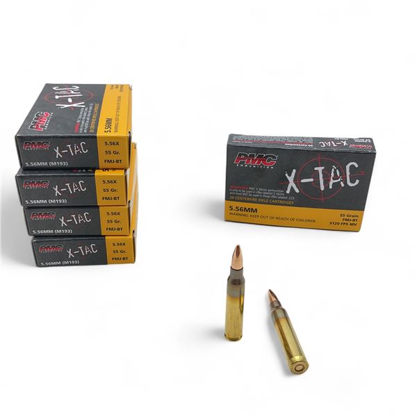 PMC X-Tac 5.56mm 55 Grain FMJ-BT Ammunition, 100 Rounds