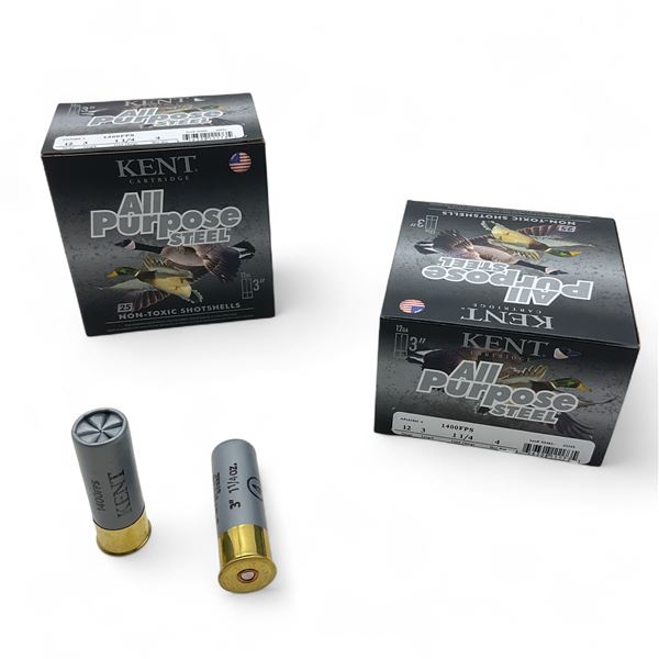 Kent All Purpose Steel 12 Gauge 3", 1 1/4 oz #4 Shot Ammunition, 50 Rounds