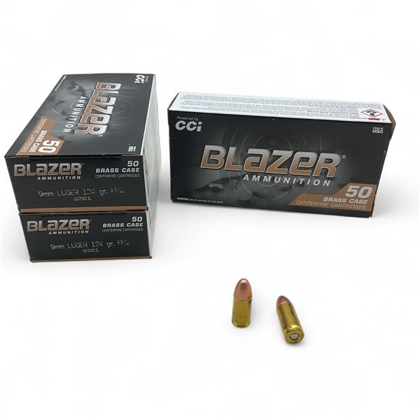 CCI Blazer 9mm Luger 124 Grain FMJ Ammunition, 150 Rounds