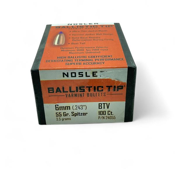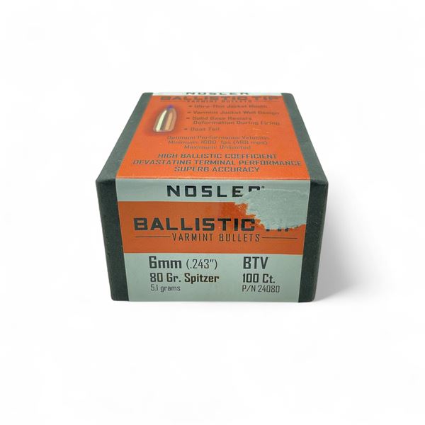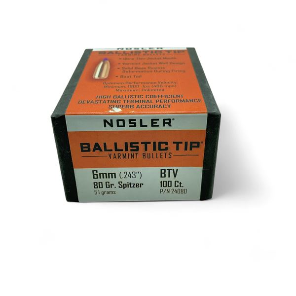 Nosler Ballistic Tip Varmint 6 mm .243" 80 Grain Spitzer Projectiles, 100 Qty