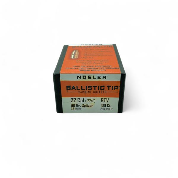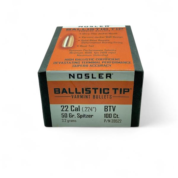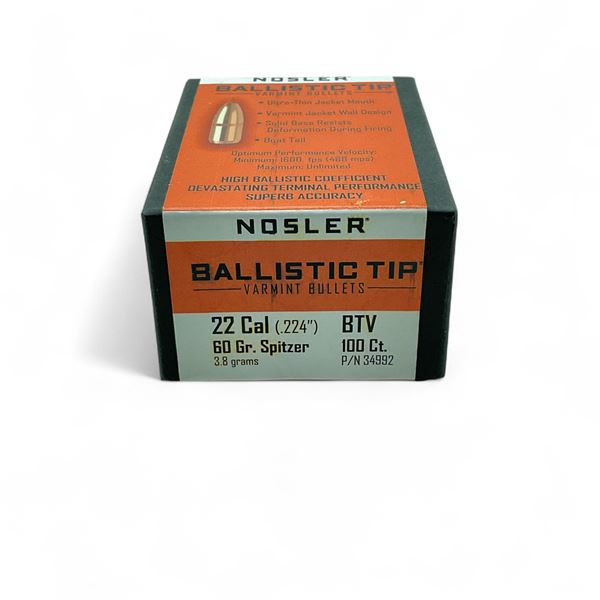 Nosler Ballistic Tip Varmint 22 Cal .224" 40 Grain Spitzer Projectiles, 100 Qty
