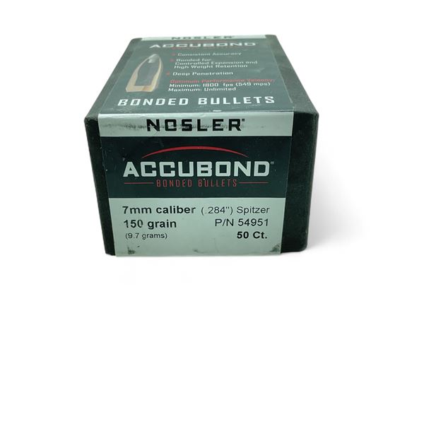 Nosler Ballistic Tip Hunting 7 mm Cal .284" 140 Grain Spitzer Projectiles, 50 Qty