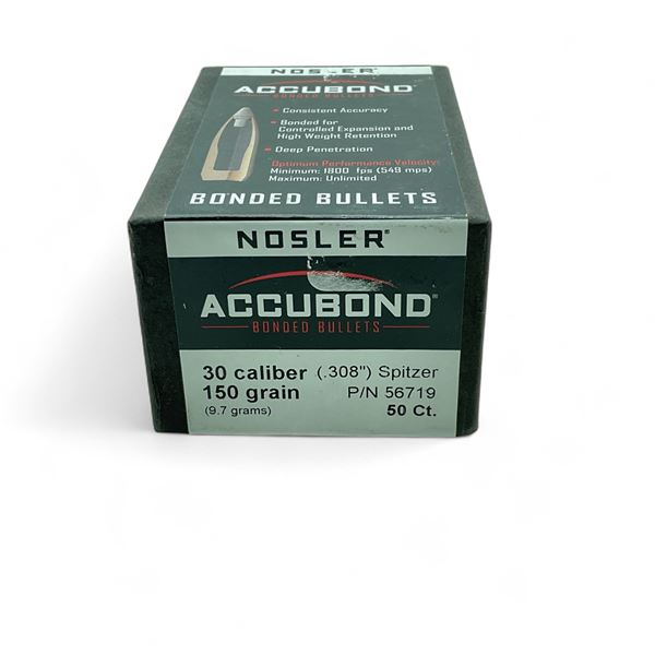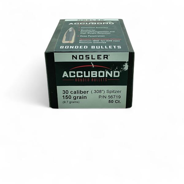Nosler Accubond Long Range 30 Cal .308" 168 Grain Spitzer Projectiles, 100 Qty