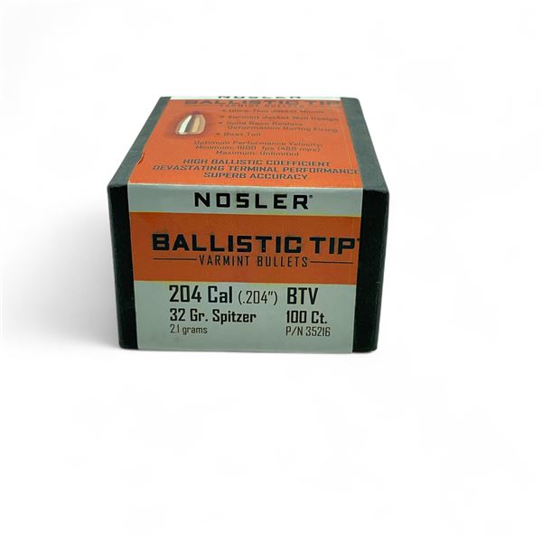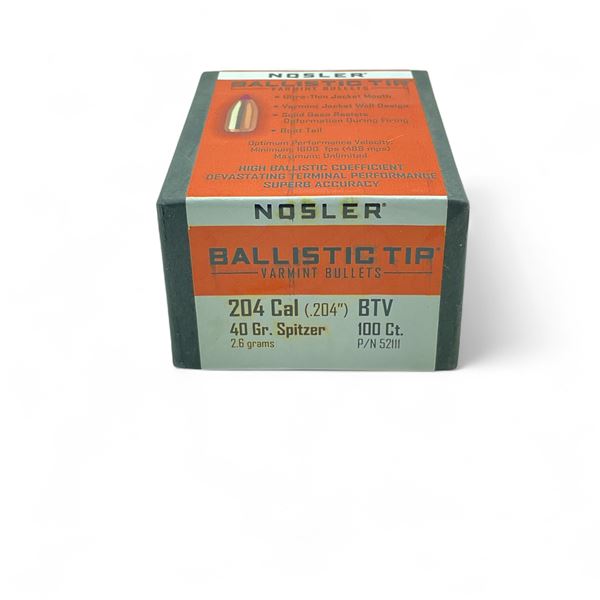 Nosler Ballistic Tip Varmint 204 Cal .204" 40 Grain Spitzer Projectiles, 100 Qty