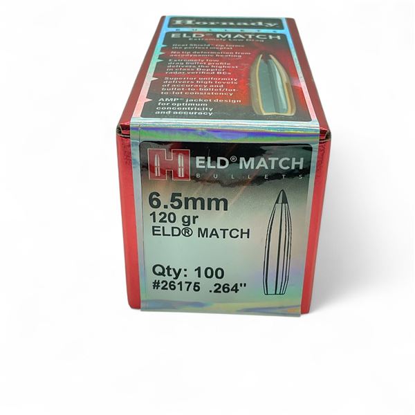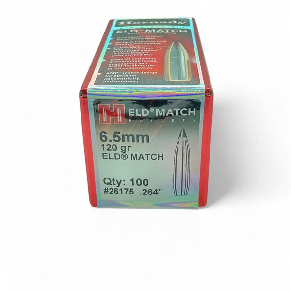 Hornady ELD Match 6.5 mm Cal .264" 120 Grain Projectiles, 100 Qty