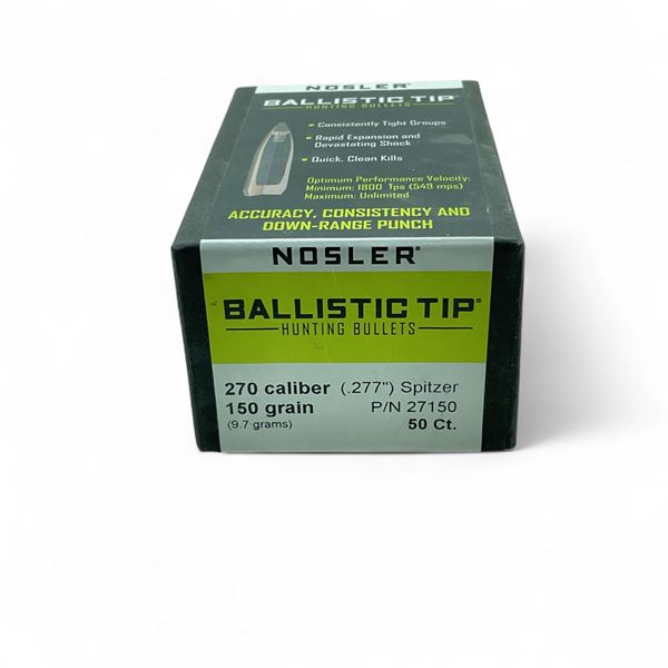 Nosler Ballistic Tip Hunting 270 Cal .277" 150 Grain Projectiles, 50 Qty