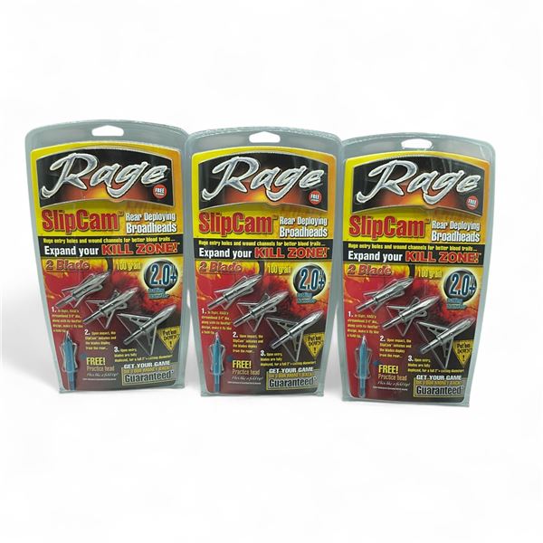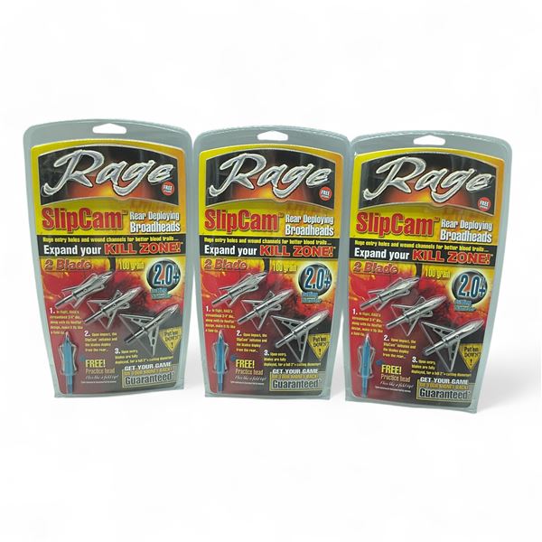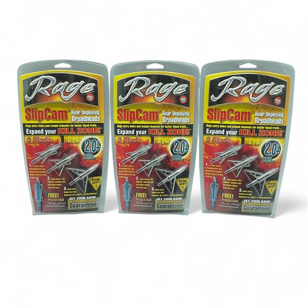 Rage Slip Cam Rear Deploying Broadheads, 2 Blade 100 Grain 3 Pack X 36371 - Rage Slip Cam Rear Deploying Broadheads, 2 Blade 100 Grain 3 Pack X 3