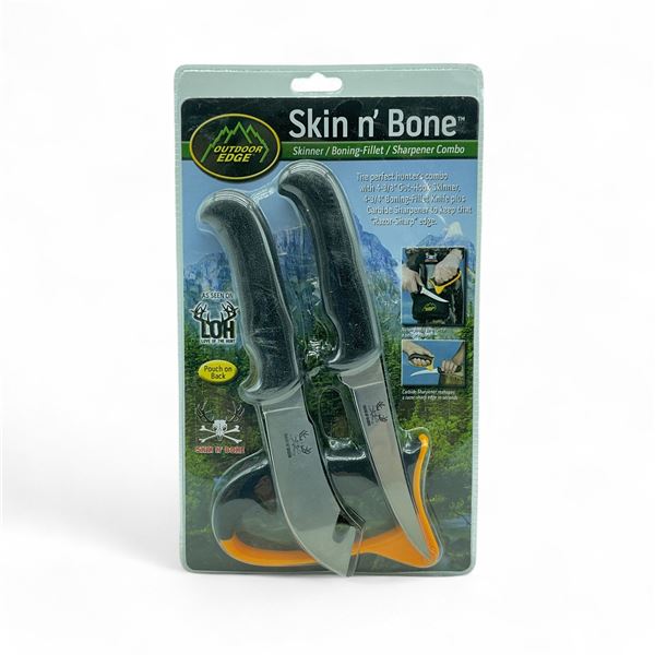 Outdoor Edge Skin N' Bone 4 3/8" Gut Hook Skinner, New, and 4 3/4" Boning- Fillet Knife, Sharpener6382 - Outdoor Edge Skin N' Bone 4 3/8" Gut Hook Skinner, New, and 4 3/4" Boning- Fillet Knife, Sharpener