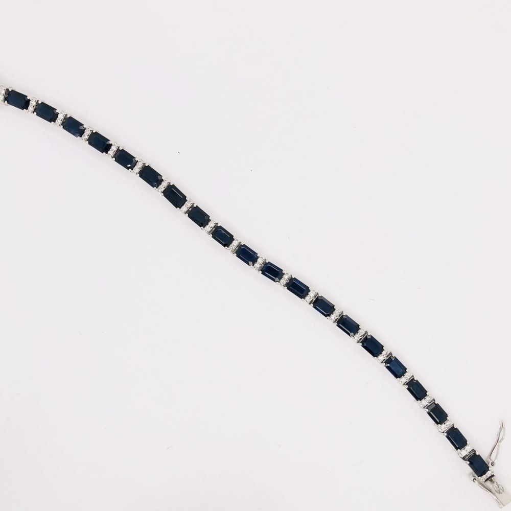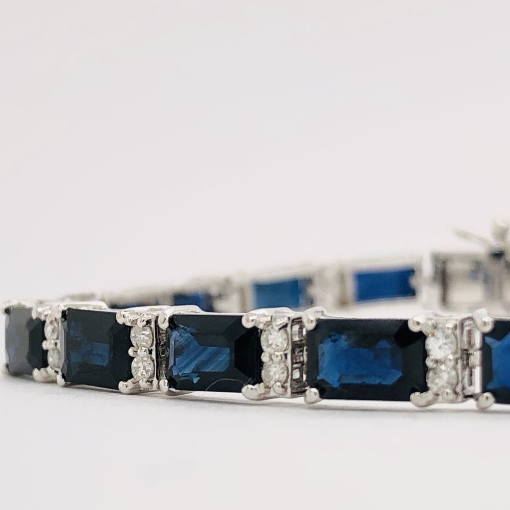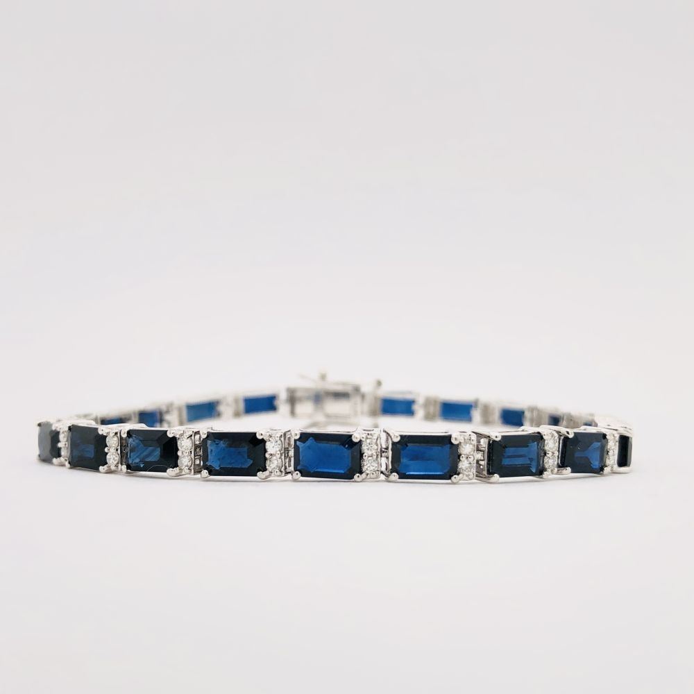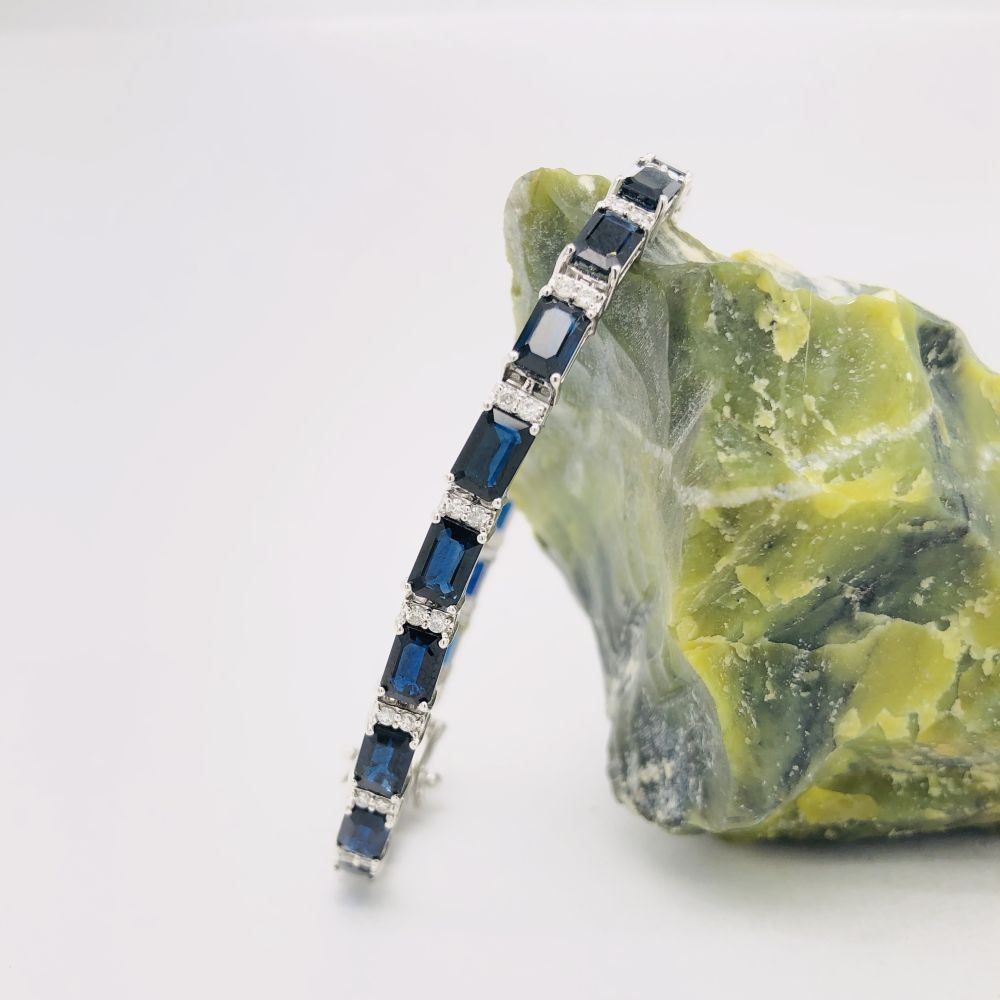 Octagon-Cut Blue Sapphire & Diamond Line Bracelet