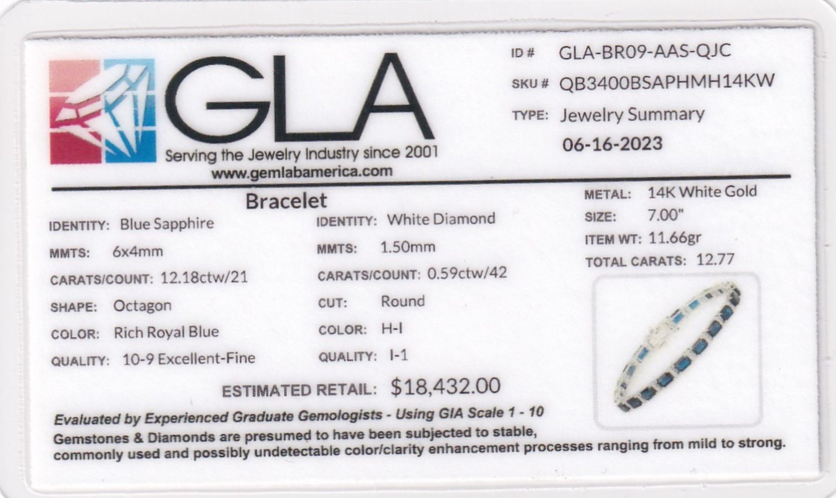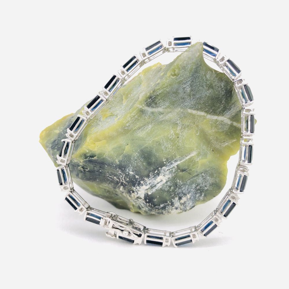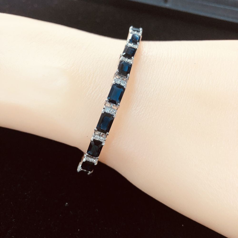 Octagon-Cut Blue Sapphire & Diamond Line Bracelet