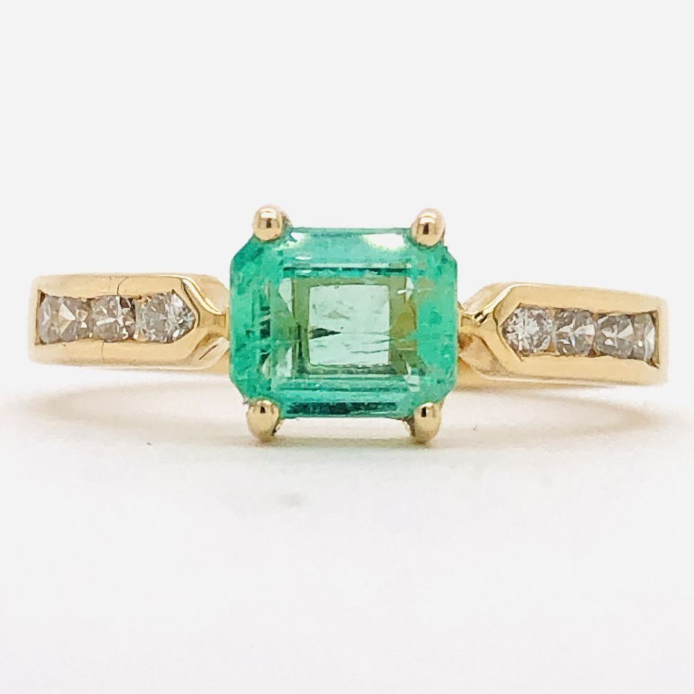 Octagon-Cut Colombian Emerald and Diamond Ring
