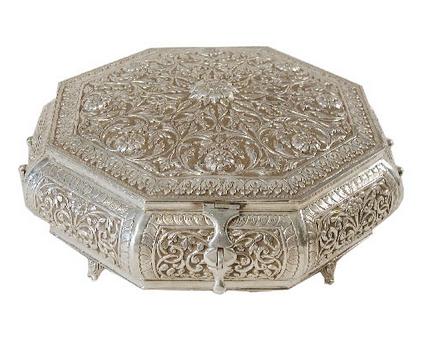 Octagon shape Jewelry Box - Hand Made Sterling Silver Octagon shape Jewelry Box/ Utility Box - 30 Oz (950 Grams) Approximate "Timeless Treasure" by Shakuntalam Silvercraft.