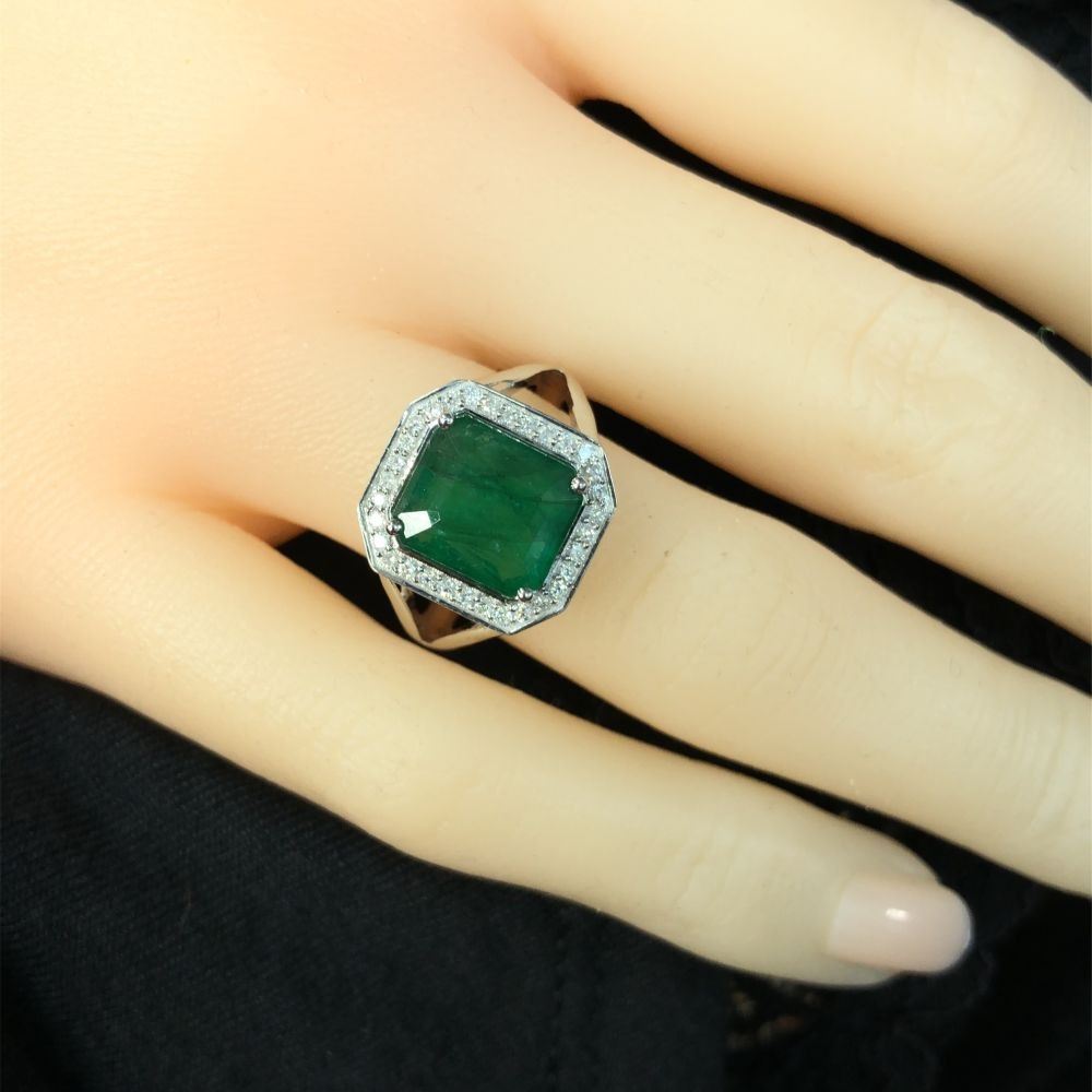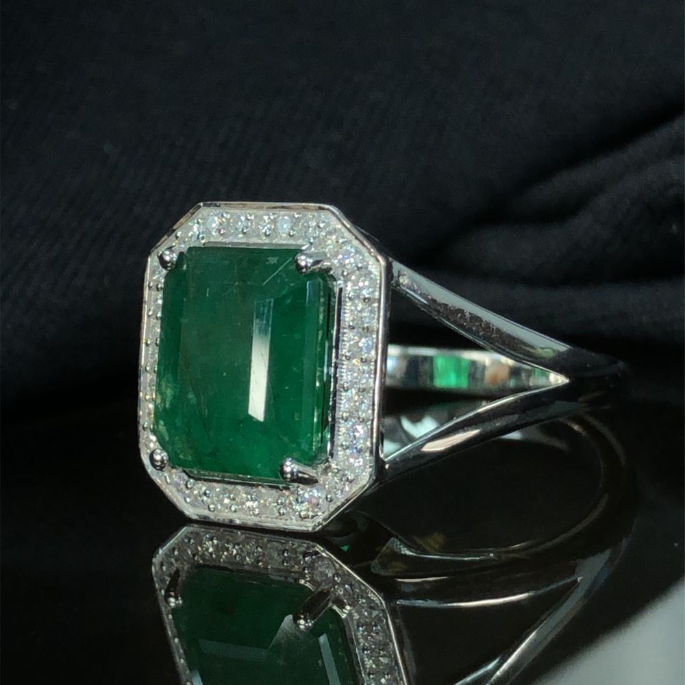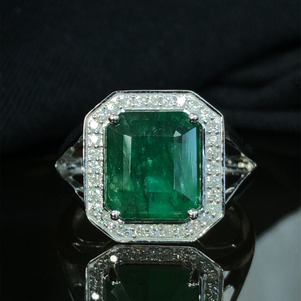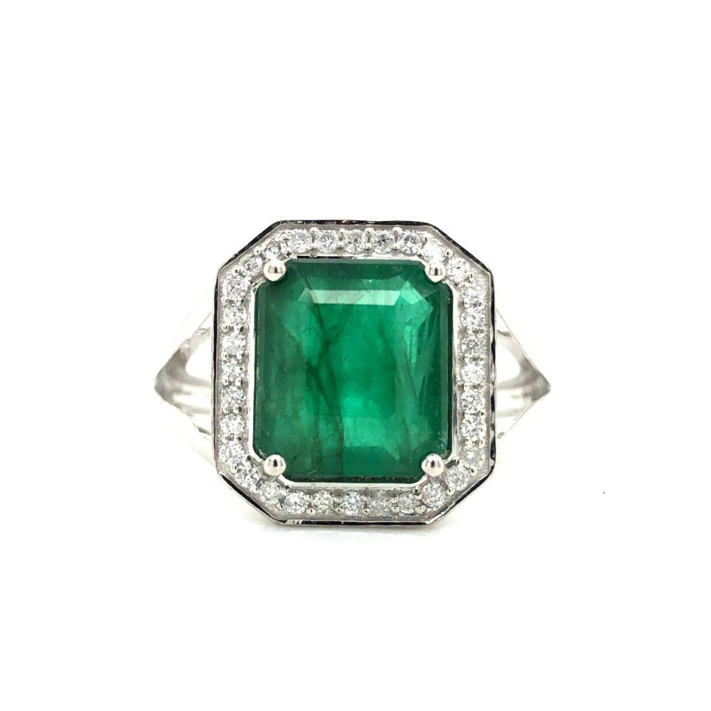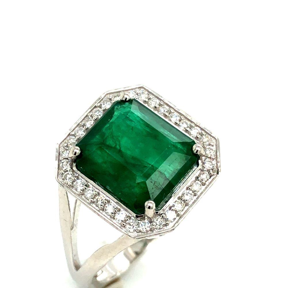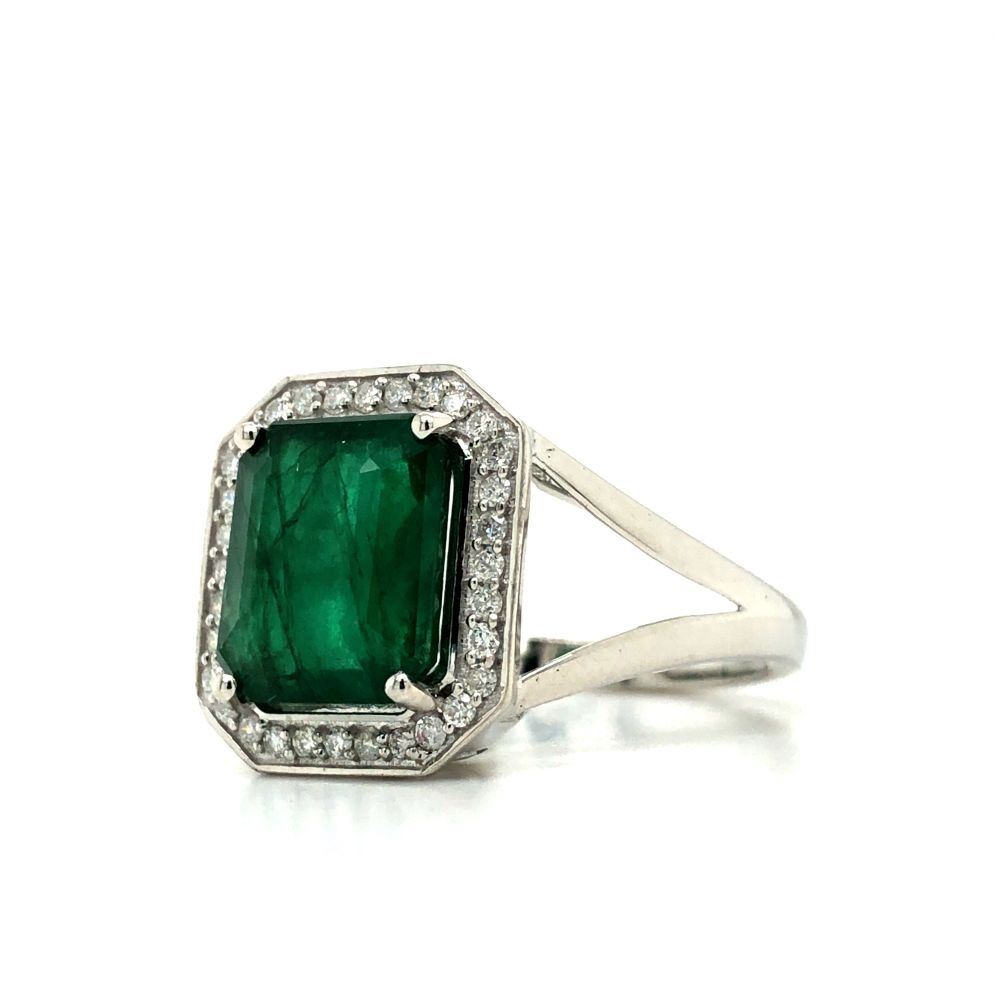 Octagonal-Cut Zambian Emerald & Diamond Halo Ring