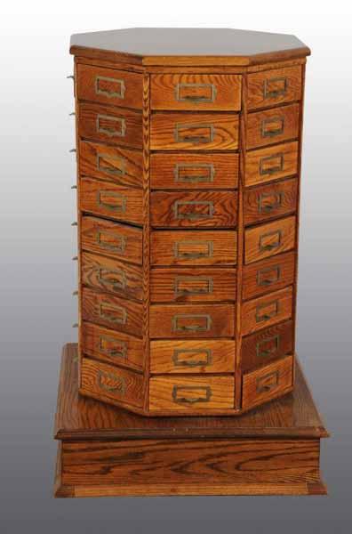 Description 72 drawers on wheeled rotating base. 100% restored and refinished. Condition (Excellent). Size 40" T.