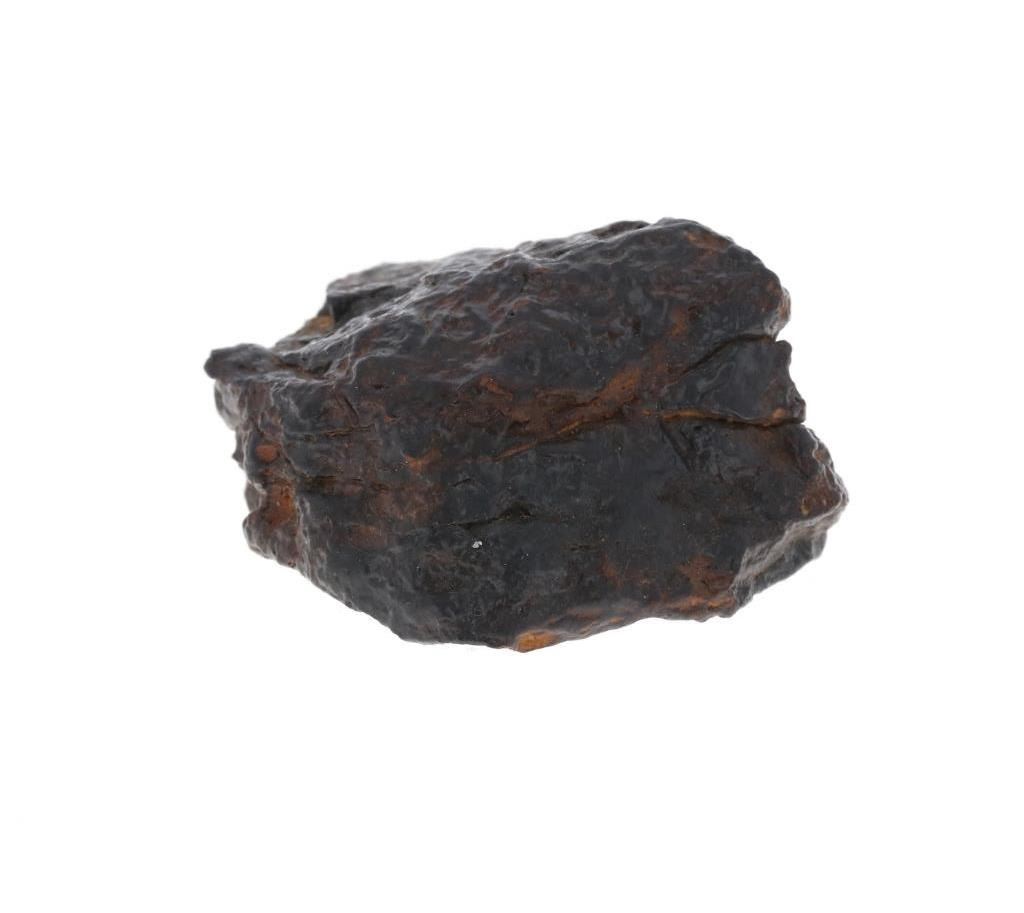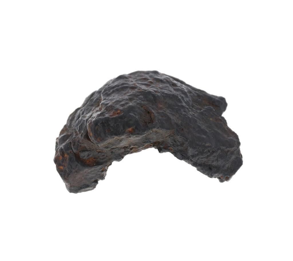 Featured in this lot is this Nantan meteorite from Nantan County, Guangxi, China. A collection of iron meteorites known as the Nantan meteorites were found in 1958 in Nantan County, Guangxi, China. They are categorized as octahedrite, which indicates that their main constituent is an iron-nickel alloy. In addition, they have a unique composition with comparatively high concentrations of iridium, gallium, and germanium, which can shed light on how the Solar System formed and developed. Iron was diligently sought after during China's big leap forward in expanding industries. The Nantan meteorite was discovered in 1958, and an attempt to melt it was conducted immediately. Fortunately, the high nickel content made this impossible, saving the meteorite. This meteorite shows high magnetic properties from the large amount of iron within its composition. It shows colors of black, brown and orange throughout the piece. The orange colors are rust spots from the rusting iron on the outside of the meteorite. The meteorite weighs 108 grams and measures 2 1/4" L x 1 13/16" W x 1 1/8" H.