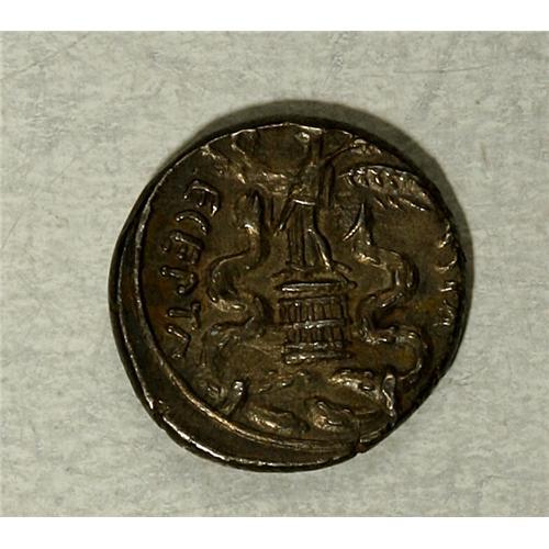 <B>Octavian.</B></I> 29-28 B.C. AR quinarius (13 mm, 1.92 g). Italian mint. Bare head right / Victory standing right, holding wreath and palm, on cista mystica between two serpents. RIC 276; HCRI 429; RSC 14. <B>Toned, good VF.</B></I><BR><BR><b>Shipping:</b> Coin/Currency (<a target="_blank" href="http://www.heritageauctions.com/common/shipping.php">view shipping information</a>)