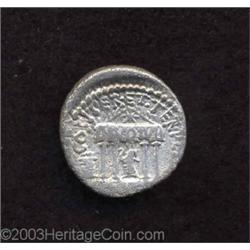 <TABLE cellSpacing=0 cellPadding=0 width="100%" bgColor=#000000 border=0><TBODY> <TR><TD width="100%"><TABLE cellSpacing=1 cellPadding=3 width="100%" border=0><TBODY><TR><TD width="100%" bgColor=#79735c><FONT face=arial color=#ffffff size=3><B>Description</B> </FONT></TD></TR><TR><TD width="100%" bgColor=#ffffff><FONT face=arial size=2><B>Octavian.</B></I> 36 B.C. AR denarius (18 mm, 3.57 g). Bare head of Octavian right / Statue of Divus Julius Caesar, holding lituus standing within tetrastyle temple; flaming altar left, star on pediment, architrave inscribed DIVO.IVL. Crawford 540/2; HCRI 315; Sydenham 1338; RSC 90. Near VF, porosity. </FONT></TD></TR></TBODY></TABLE></TD></TR></TBODY></TABLE><BR><A name=PricesRealized></A><TABLE cellSpacing=0 cellPadding=0 width="100%" bgColor=#000000 border=0><TBODY><TR><TD width="100%"><TABLE cellSpacing=1 cellPadding=3 width="100%" border=0><TBODY><TR><TD width="100%" bgColor=#79735c><A name=PR><FONT face=arial color=#ffffff size=3><B>Previous Prices from Heritage Auctions</B> </FONT></A></TD></TR><TR><TD bgColor=#f6f6ed>No Prior Data Recorded </TD></TR><TR><TD bgColor=#ffffff><FONT face=arial size=1 ?>PLEASE NOTE: All prices realized reflect the final hammer price PLUS the buyer's premium in auctions that charge a buyer's premium. Each item has a notation at the top of the listing indicating whether that lot included a buyer's premium. Example: A item that sells with a final hammer price of $100 and a 20% buyer's premium will display with a price realized of $120. All information listed is intended to be as accurate as possible, but errors are possible. Please use this guide carefully and inform us of any inaccuracies. </FONT></TD></TR></TBODY></TABLE></TD></TR></TBODY></TABLE><BR><TABLE cellSpacing=0 cellPadding=0 width="100%" bgColor=#000000 border=0><TBODY><TR><TD width="100%"><TABLE cellSpacing=1 cellPadding=3 width="100%" border=0><TBODY><TR><TD width="100%" bgColor=#79735c colSpan=6><FONT face=arial color=#ffffff size=3><B>Price Guide*</B> </FONT></TD></TR><TR bgColor=#f6f6ed><TD align=middle><B>Grade</B> </TD><TD align=middle><B>Coin World<BR>(Trends)</B> </TD><TD align=middle><B>Numismedia<BR>Retail</B> </TD><TD align=middle><B>Numismedia<BR>Wholesale</B> </TD><TD align=middle><B>Coin<BR>Universe</B> </TD><TD align=middle><B>Heritage<BR>Value Index</B> </TD></TR><TR bgColor=#ffffff><TD colSpan=6><FONT size=1>*All information listed is intended to be as accurate as possible, but errors are possible. No item may be returned or refused based on this information which is provided as a service to our customers. You should contact each pricing source directly to determine the accuracy of this information. </FONT></TD></TR></TBODY></TABLE></TD></TR></TBODY></TABLE><BR><TABLE cellSpacing=0 cellPadding=0 width="100%" bgColor=#000000 border=0><TBODY><TR><TD width="100%"><TABLE cellSpacing=1 cellPadding=3 width="100%" border=0><TBODY><TR><TD width="100%" bgColor=#79735c><FONT face=arial color=#ffffff size=3><B>Population Guide</B> </FONT></TD></TR><TR bgColor=#ffffff> Important notice: Heritage usually auctions material at the rate of 200-250 lots per hour. On some occasions eBay Live bid software or the Internet may not be able to keep up with the pace of the auction. We recommend placing a realistic absentee bid now as insurance to avoid disappointment. Occasionally the auctioneer may eliminate or reject an eBay Live bid, and the auctioneer may also reopen a lot after the close of the eBay live bidding (usually because we missed an audience bid), and may reject your bid even if it shows you as the winning bidder. By bidding via eBay Live, you agree that Heritage may award the lot to another bidder at its sole discretion under the circumstances described above or any other reasonable circumstances. Also please note that all Heritage lots purchased through eBay Live carry a 20% Buyer's Premium. Please make sure you read the Terms and Conditions before you bid.</TD></TR></TBODY></TABLE></TD></TR></TBODY></TABLE>