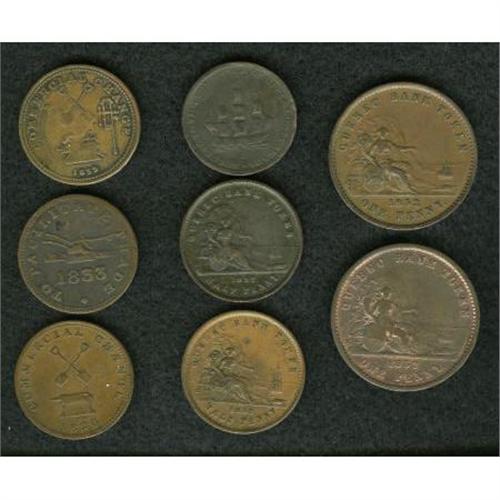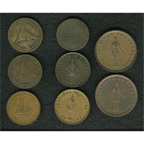 <B>Octet of Canadian Breton Tokens.</B></I> Includes: <B>B-28 (two pieces); B-29 (two pieces); B-723; B-727; B-730; </B></I>and<B> B-731.</B></I><BR><BR><b>Shipping:</b> Coins & Currency (<a target="_blank" href="http://www.heritageauctions.com/common/shipping.php">view shipping information</a>)