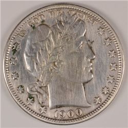 1900 BARBER HALF DOLLAR, AU-55 CLEANED