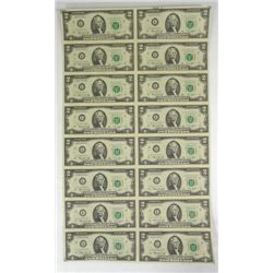 UNCUT SHEET OF 16 1976 $2.00 STAR NOTES "BICENTENNIAL" TOP 2 & LOWER LEFT STAIN