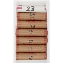 ( 7 ) SHOTGUN WRAPPED ROLLS OF ( 50 ) EACH CIRC. LINCOLN CENTS OF THE 20'S