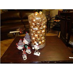 LOT - TRAY, TRIVET, FLATTENED GLASS BOTTLE, CANDLE HOLD, PEAR AND 3 ACCENT BALLS