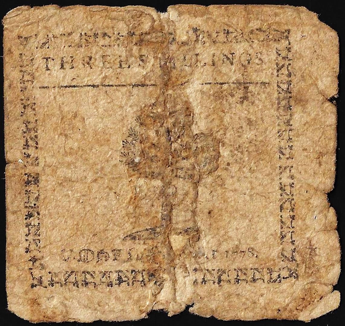 One October 16, 1778 Three Shillings Massachusetts Colonial Currency Note.