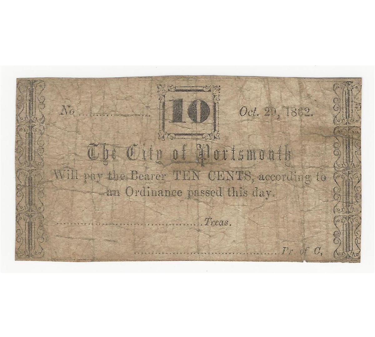 One October 20, 1862 10 Cents The City of Portsmonth Note.