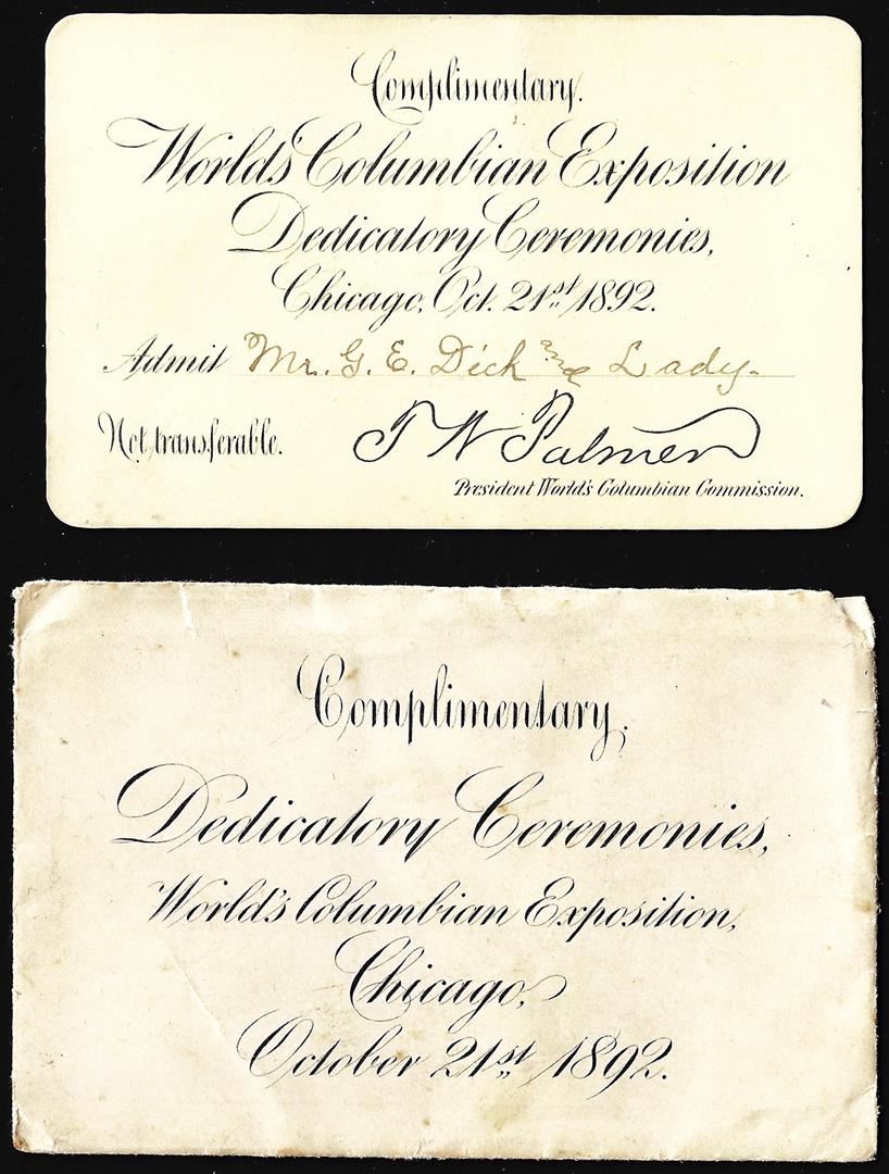 One October 21, 1892 World's Columbian Exposition Dedicated Ceremonies Envelope & Ticket.