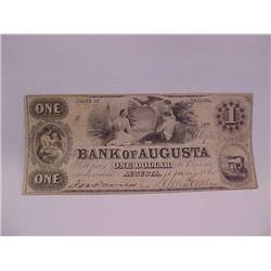 2 Obsolete Notes: 1861 Bank of Augusta GA $1, SN 6693, cancelled, F pinholes; July 1862 Virginia Treasury $1, SN 108476, G-VG