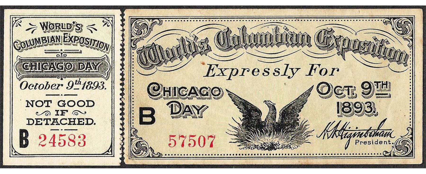 October 9th, 1893 World's Columbian Exposition Ticket with Detached Stub