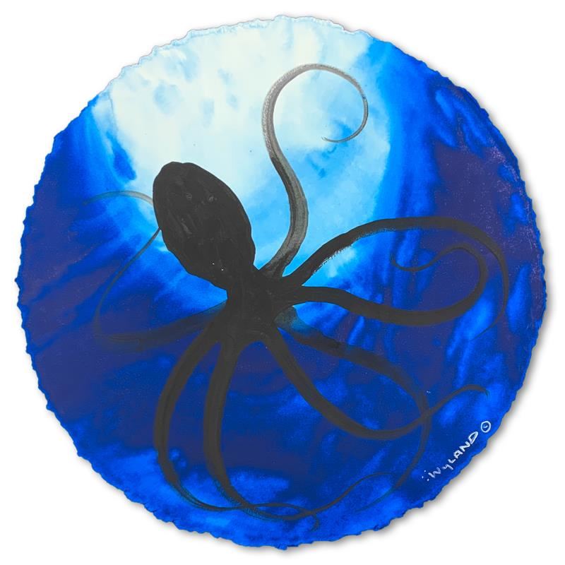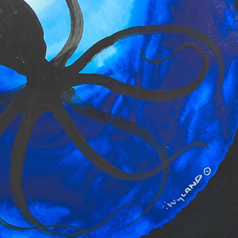 "Octopus" is an original painting, watercolor on deckle edge paper by Wyland. Hand signed by the artist, the piece comes custom framed and with a letter of authenticity. Measures approximately 30" x 30" (framed), 19.5" x 19.5" (image).