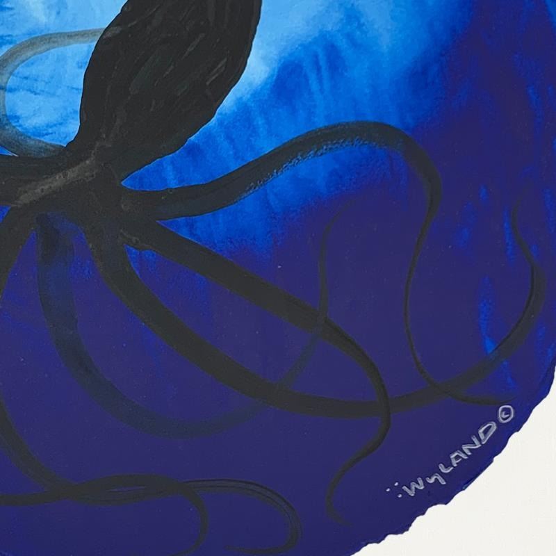 "Octopus in the deep blue Sea" is an original painting, watercolor on deckle edge paper by Wyland. Hand signed by the artist, the piece comes custom framed and with a letter of authenticity. Measures approximately 30" x 30" (framed), 19.5" x 19.5" (image).