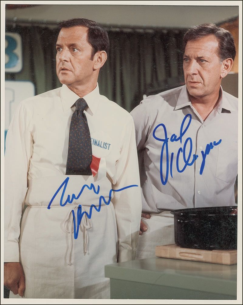 Color satin-finish 8 x 10 photo of Oscar and Felix from the show, signed in blue felt tip by Tony Randall and Jack Klugman. In fine condition.