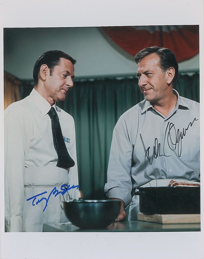 Color glossy 8 x 10 photo of Oscar and Felix, signed in blue felt tip by Tony Randall and in black felt tip by Jack Klugman. In fine condition.